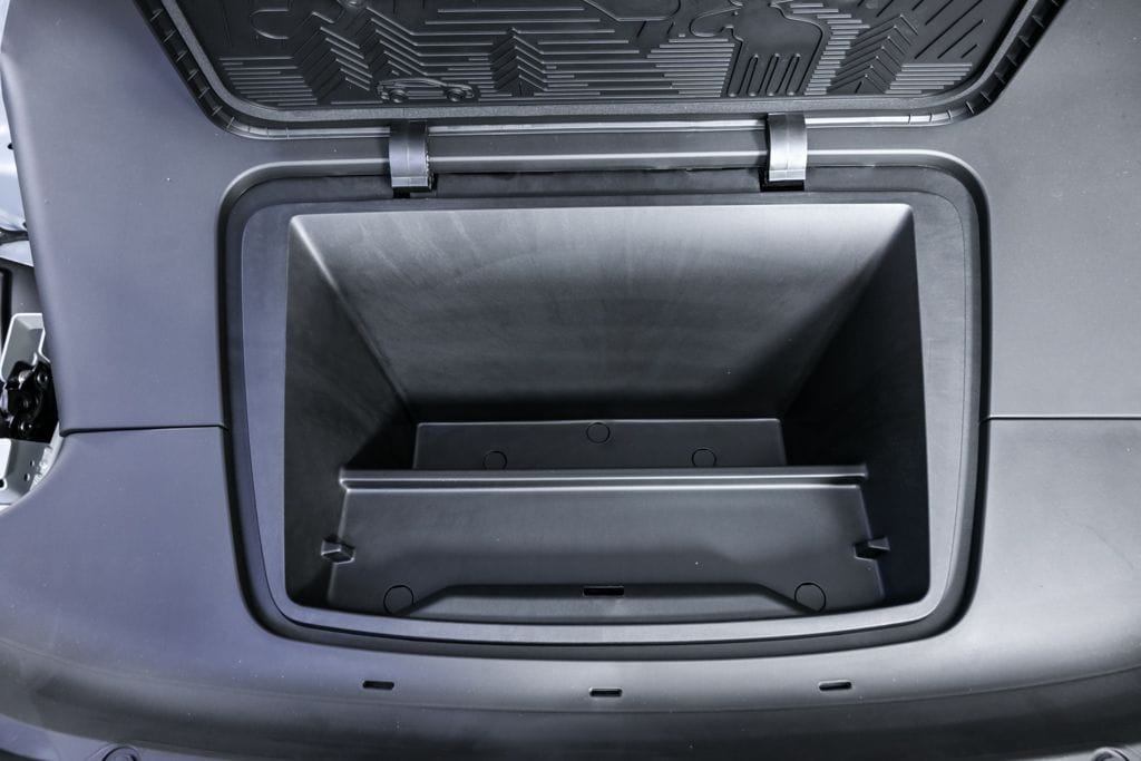 - Front load compartment - Provides smart storage of the warning triangle, tire repair kit, or washer fluid bottles.