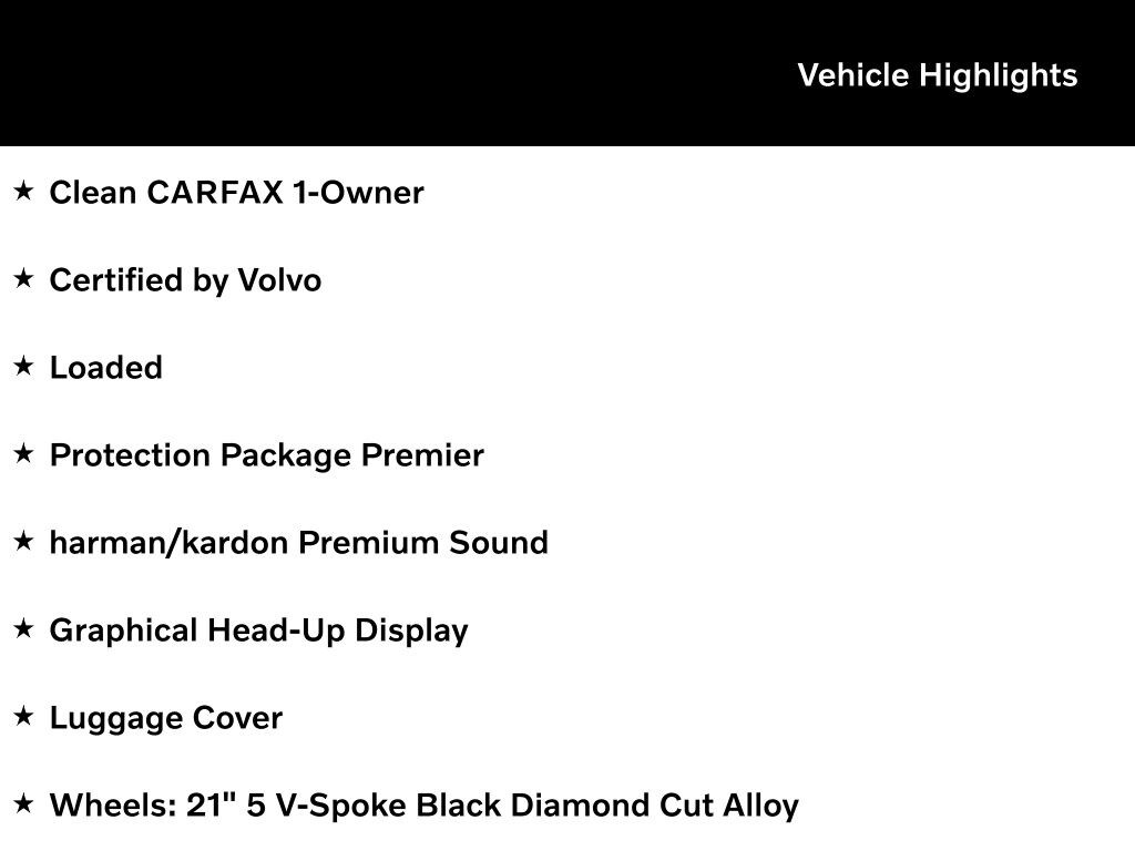 Perfectly complementing the luxurious interior are the striking 21" 5 V-Spoke Black Diamond Cut Alloy Wheels, adding a touch of sophistication to the already impressive presence of this Volvo SUV.